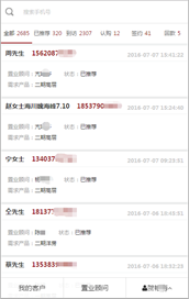 客戶信息審核:置業(yè)顧問在微信端接收到推送過來的客戶數(shù)據(jù),可根據(jù)設(shè)置的模式獲得客戶數(shù)據(jù),也可進(jìn)行搶單,將客戶變?yōu)樽约旱母M(jìn)客戶,進(jìn)行客戶信息的初步審核。