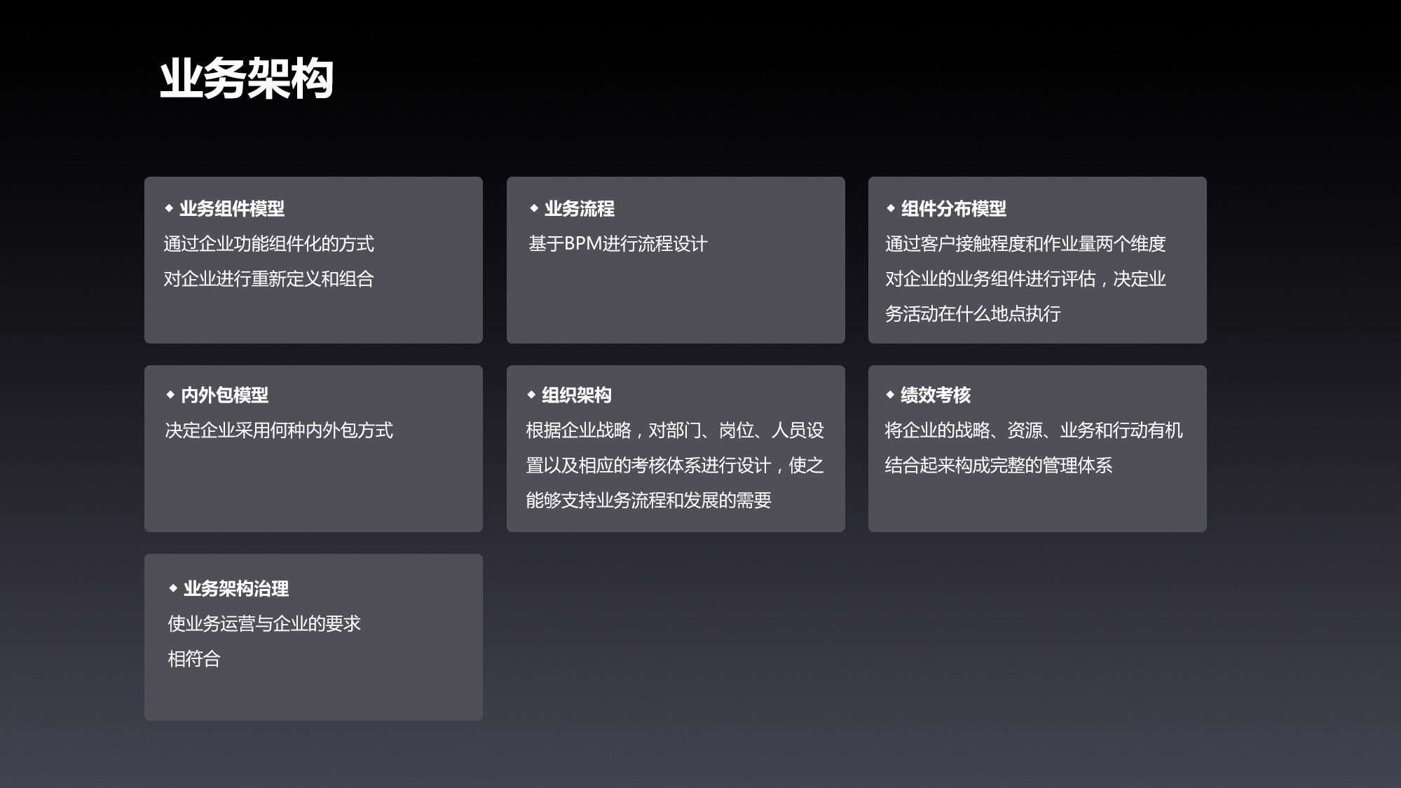 業(yè)務(wù)架構(gòu)從企業(yè)高層視角,“智匯”助力領(lǐng)導(dǎo)者、董事會與股東,借ARC - BSC平衡計(jì)分卡系統(tǒng)等決策層工具,清晰洞察運(yùn)營計(jì)劃、價(jià)值與挑戰(zhàn),精準(zhǔn)錨定戰(zhàn)略方向。在業(yè)務(wù)模式重塑上,以業(yè)務(wù)組件模型為抓手,通過企業(yè)功能組件化的方式,對企業(yè)進(jìn)行重新定義和組合,聯(lián)動(dòng)“數(shù)盈”數(shù)據(jù)資產(chǎn)運(yùn)營等服務(wù),打破傳統(tǒng)邊界,構(gòu)建契合戰(zhàn)略的全新業(yè)務(wù)運(yùn)營模式 。